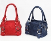 Cartera de cuero cuatro hebillas con bolsillos externos interior porta celular, bolsillo con cierre y porta tarjetas división
